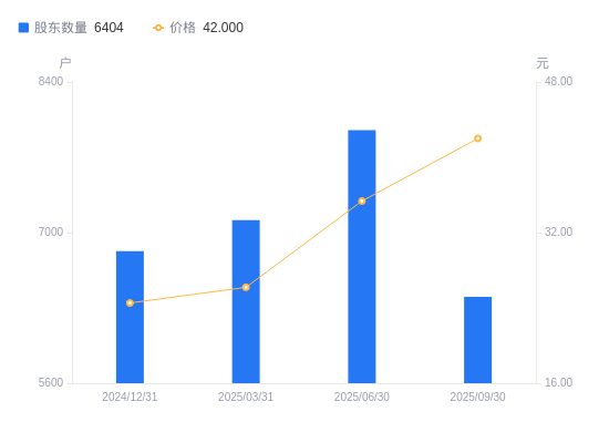 近一年(2024年9月30日至2025年9月30日),聚胶股份A股股东户数从6723户,减低至6404户,降幅4.74%,区间股价上涨80.23%。