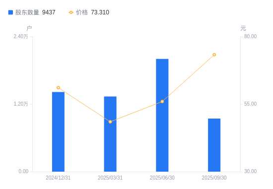 近一年(2024年9月30日至2025年9月30日),青木科技A股股东户数从8669户,增加至9437户,增幅8.86%,区间股价上涨150.27%。