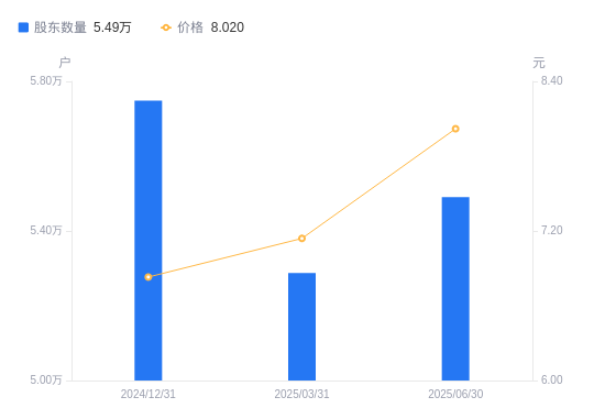 近一年(2024年9月30日至2025年9月30日),生物股份A股股东户数从5.47万户,减低至4.9万户,降幅10.32%,区间股价上涨42.81%。