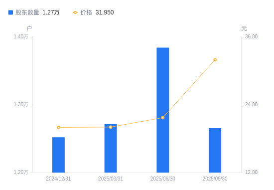 近一年(2024年9月30日至2025年9月30日),诚达药业A股股东户数从1.47万户,减低至1.27万户,降幅13.65%,区间股价上涨67.24%。