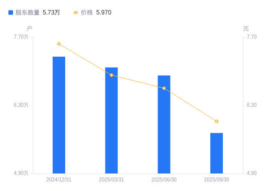 近一年(2024年9月30日至2025年9月30日),宜通世纪A股股东户数从7.24万户,减低至5.73万户,降幅20.85%,区间股价下跌12.21%。