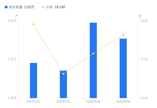 近一年(2024年9月30日至2025年9月30日),金丹科技A股股东户数从1.66万户,增加至2.02万户,增幅21.76%,区间股价上涨27.01%。