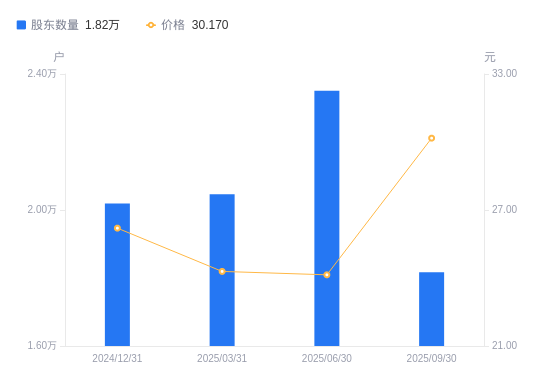 近一年(2024年9月30日至2025年9月30日),顾家家居A股股东户数从2.19万户,减低至1.82万户,降幅17.17%,区间股价上涨6.80%。