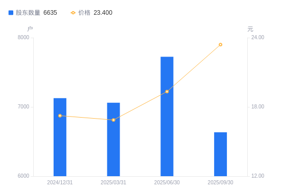 10月27日消息,数据显示,截至2025年9月30日,赛伦生物A股股东总户数为6635户,较上期(2025年6月30日)减少1089户,降幅14.10%。公司最新A股总股本为1.08亿股,其中流通A股1.08亿股,户均持有流通A股数量为1.63万股,较上期增加1.06万股,增幅183.92%;户均持流通A股市值38.17万元,较上期增加27.06万元,增幅243.70%。