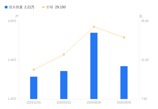 10月27日消息,数据显示,截至2025年9月30日,爱朋医疗A股股东总户数为2.21万户,较上期(2025年6月30日)减少1.03万户,降幅31.76%。公司最新A股总股本为1.26亿股,其中流通A股8790.58万股,户均持有流通A股数量为3972.6股,较上期增加1261.55股,增幅46.53%;户均持流通A股市值11.58万元,较上期增加2.64万元,增幅29.52%。