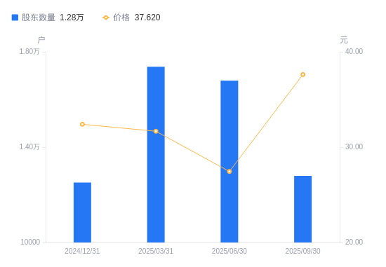 近一年(2024年9月30日至2025年9月30日),沪光股份A股股东户数从1.05万户,增加至1.28万户,增幅21.91%,区间股价上涨42.07%。