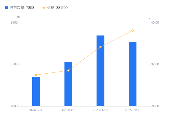 近一年(2024年9月30日至2025年9月30日),正强股份A股股东户数从1.02万户,减低至7858户,降幅23.23%,区间股价上涨115.44%。