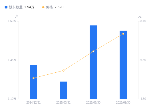 近一年(2024年9月30日至2025年9月30日),盛泰集团A股股东户数从1.35万户,增加至1.54万户,增幅13.97%,区间股价上涨46.70%。