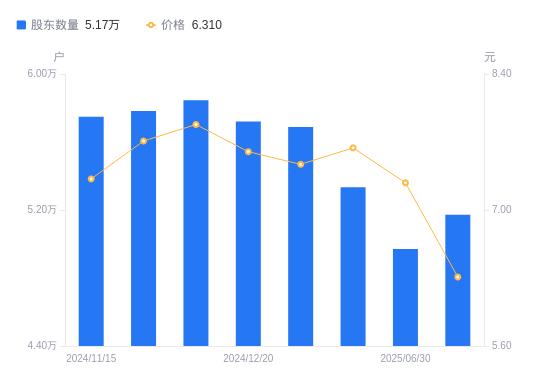 10月27日消息,数据显示,截至2025年9月30日,华昌化工A股股东总户数为5.17万户,较上期(2025年6月30日)增加2005户,增幅4.03%。公司最新A股总股本为9.52亿股,其中流通A股9.38亿股,户均持有流通A股数量为1.81万股,较上期减少731.37股,降幅3.88%;户均持流通A股市值11.44万元,较上期减少2.29万元,降幅16.68%。