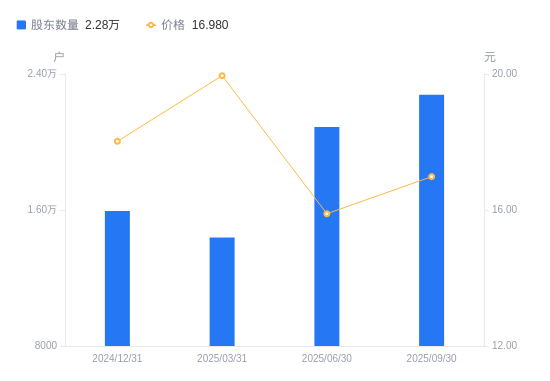 近一年(2024年9月30日至2025年9月30日),华峰铝业A股股东户数从1.67万户,增加至2.28万户,增幅36.52%,区间股价上涨0.53%。