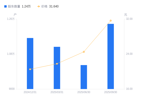近一年(2024年9月30日至2025年9月30日),中国电研A股股东户数从1.05万户,增加至1.24万户,增幅17.89%,区间股价上涨82.15%。