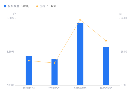 近一年(2024年9月30日至2025年9月30日),优博讯A股股东户数从3.23万户,增加至3.89万户,增幅20.43%,区间股价上涨46.72%。