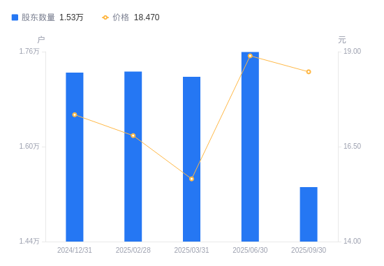 近一年(2024年9月30日至2025年9月30日),华宝股份A股股东户数从1.78万户,减低至1.53万户,降幅14.13%,区间股价上涨12.08%。