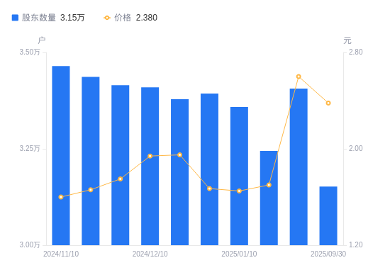 近一年(2024年9月30日至2025年9月30日),ST德豪A股股东户数从3.48万户,减低至3.15万户,降幅9.49%,区间股价上涨75.00%。