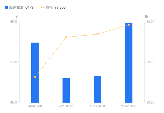 近一年(2024年9月30日至2025年9月30日),安博通A股股东户数从5172户,增加至6479户,增幅25.27%,区间股价上涨159.60%。
