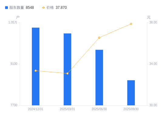 近一年(2024年9月30日至2025年9月30日),协昌科技A股股东户数从1.11万户,减低至8548户,降幅22.86%,区间股价上涨17.54%。