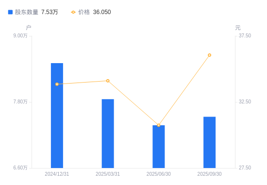 近一年(2024年9月30日至2025年9月30日),新洁能A股股东户数从6.78万户,增加至7.53万户,增幅11.13%,区间股价上涨15.35%。