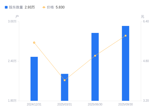 近一年(2024年9月30日至2025年9月30日),迪生力A股股东户数从2.27万户,增加至2.93万户,增幅28.95%,区间股价上涨27.57%。