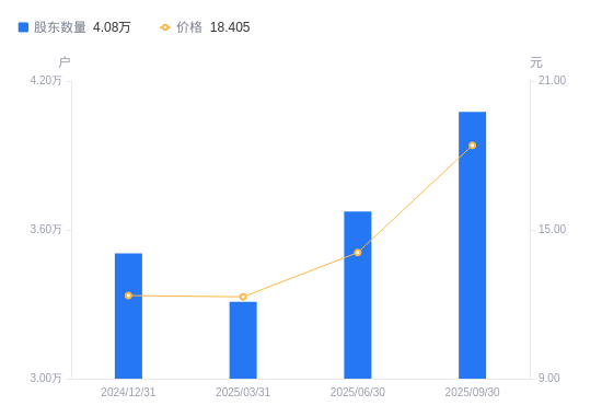 近一年(2024年9月30日至2025年9月30日),吉宏股份A股股东户数从4.1万户,减低至4.08万户,降幅0.59%,区间股价上涨54.77%。