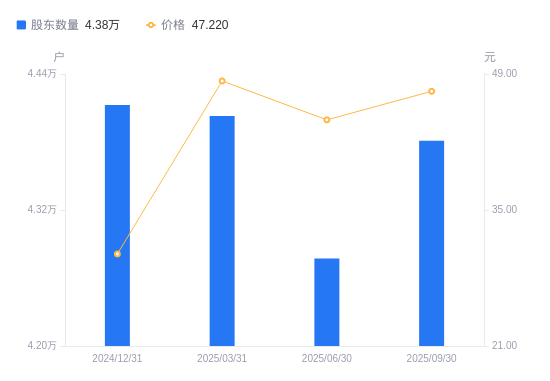 近一年(2024年9月30日至2025年9月30日),雷赛智能A股股东户数从3万户,增加至4.38万户,增幅45.96%,区间股价上涨124.29%。