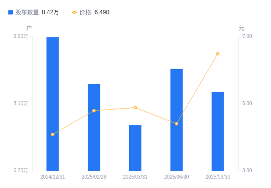 近一年(2024年9月30日至2025年9月30日),华菱钢铁A股股东户数从10.11万户,减低至8.42万户,降幅16.72%,区间股价上涨55.23%。