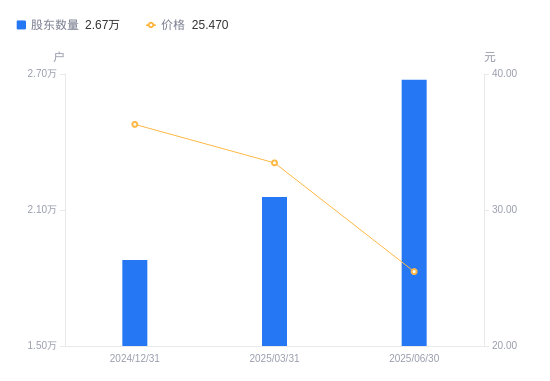 10月27日消息,数据显示,截至2025年9月30日,海兴电力A股股东总户数为2.48万户,较上期(2025年6月30日)减少1986户,降幅7.43%。公司最新A股总股本为4.86亿股,其中流通A股4.86亿股,户均持有流通A股数量为1.96万股,较上期增加1458.74股,增幅8.02%;户均持流通A股市值54.68万元,较上期增加8.37万元,增幅18.07%。