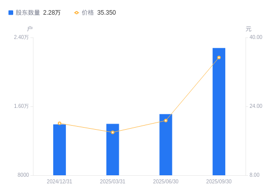 近一年(2024年9月30日至2025年9月30日),利扬芯片A股股东户数从1.26万户,增加至2.28万户,增幅81.19%,区间股价上涨144.13%。