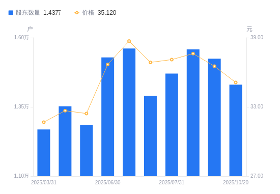 近一年(2024年10月31日至2025年10月20日),挖金客A股股东户数从9720户,增加至1.43万户,增幅47.17%,区间股价上涨31.15%。