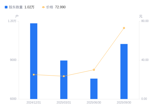 近一年(2024年9月30日至2025年9月30日),罗曼股份A股股东户数从8987户,增加至1.02万户,增幅13.93%,区间股价上涨191.38%。