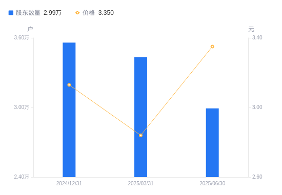 近一年(2024年9月30日至2025年9月30日),天地源A股股东户数从3.71万户,减低至2.9万户,降幅21.93%,区间股价上涨11.34%。
