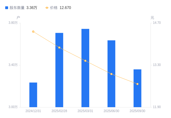 近一年(2024年9月30日至2025年9月30日),一拖股份A股股东户数从1.93万户,增加至3.36万户,增幅74.24%,区间股价下跌24.23%。