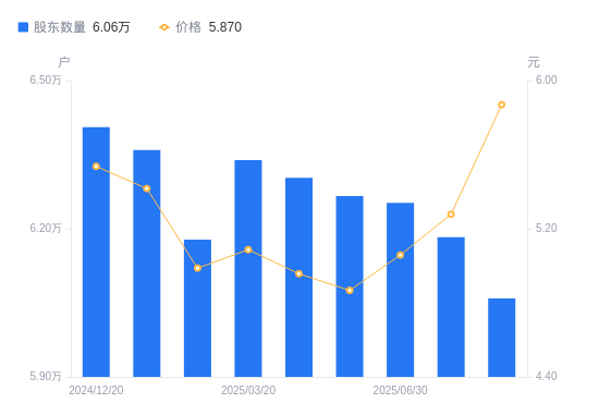 近一年(2024年9月30日至2025年9月30日),国网英大A股股东户数从6.39万户,减低至6.06万户,降幅5.23%,区间股价上涨20.16%。