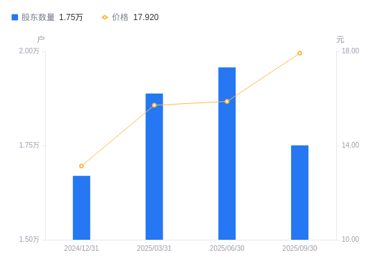 近一年(2024年9月30日至2025年9月30日),宁波高发A股股东户数从1.63万户,增加至1.75万户,增幅7.16%,区间股价上涨51.48%。