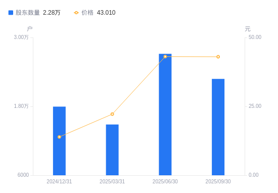 10月28日消息,数据显示,截至2025年9月30日,若羽臣A股股东总户数为2.28万户,较上期(2025年6月30日)减少4380户,降幅16.13%。公司最新A股总股本为3.11亿股,其中流通A股2.26亿股,户均持有流通A股数量为9928.1股,较上期增加3773.69股,增幅61.32%;户均持流通A股市值42.7万元,较上期增加16.19万元,增幅61.09%。