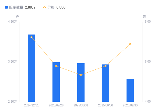 10月28日消息,数据显示,截至2025年9月30日,南宁百货A股股东总户数为2.89万户,较上期(2025年6月30日)减少5130户,降幅15.07%。公司最新A股总股本为5.45亿股,其中流通A股5.39亿股,户均持有流通A股数量为1.86万股,较上期增加2805.95股,增幅17.74%;户均持流通A股市值12.81万元,较上期增加3.65万元,增幅39.90%。