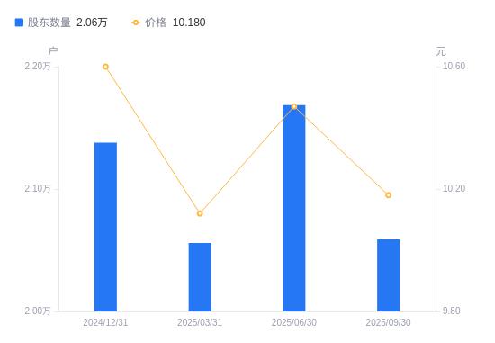 10月28日消息,数据显示,截至2025年9月30日,九联科技A股股东总户数为2.06万户,较上期(2025年6月30日)减少1098户,降幅5.06%。公司最新A股总股本为5亿股,其中流通A股5亿股,户均持有流通A股数量为2.43万股,较上期增加1229.64股,增幅5.33%;户均持流通A股市值24.72万元,较上期增加5831.42元,增幅2.42%。