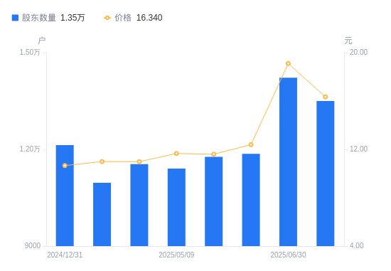 近一年(2024年9月30日至2025年9月30日),杭州园林A股股东户数从1.32万户,增加至1.35万户,增幅2.05%,区间股价上涨62.10%。