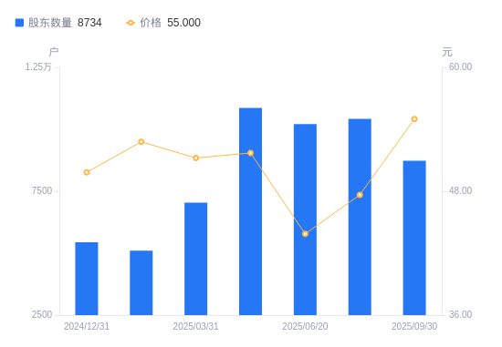 近一年(2024年9月30日至2025年9月30日),诺思格A股股东户数从5836户,增加至8734户,增幅49.66%,区间股价上涨26.17%。