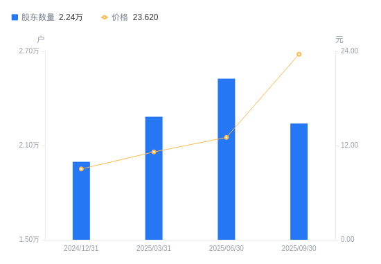 近一年(2024年9月30日至2025年9月30日),震安科技A股股东户数从1.94万户,增加至2.24万户,增幅15.51%,区间股价上涨141.76%。