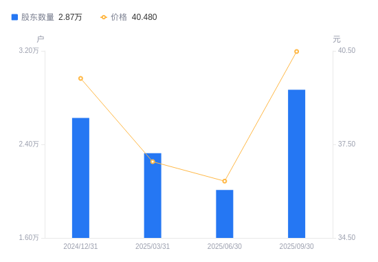 近一年(2024年9月30日至2025年9月30日),因赛集团A股股东户数从2.53万户,增加至2.87万户,增幅13.16%,区间股价上涨20.92%。