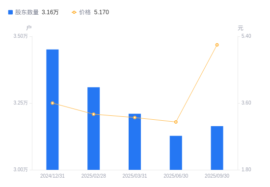 近一年(2024年9月30日至2025年9月30日),上实发展A股股东户数从3.48万户,减低至3.16万户,降幅9.19%,区间股价上涨63.61%。