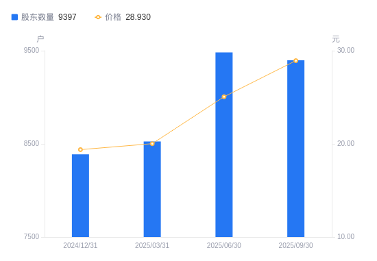 近一年(2024年9月30日至2025年9月30日),百奥泰A股股东户数从8188户,增加至9397户,增幅14.77%,区间股价上涨32.40%。