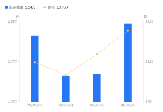 近一年(2024年9月30日至2025年9月30日),中红医疗A股股东户数从2.05万户,增加至2.24万户,增幅9.14%,区间股价上涨32.04%。