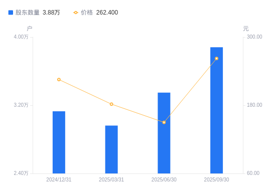 近一年(2024年9月30日至2025年9月30日),罗博特科A股股东户数从2.4万户,增加至3.88万户,增幅61.74%,区间股价上涨166.68%。