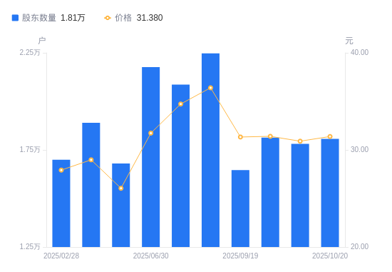 近一年(2024年9月30日至2025年9月30日),拓新药业A股股东户数从2.16万户,减低至1.81万户,降幅16.15%,区间股价上涨2.72%。