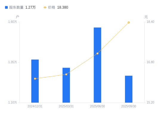 近一年(2024年9月30日至2025年9月30日),一彬科技A股股东户数从1.46万户,减低至1.27万户,降幅13.29%,区间股价上涨15.16%。