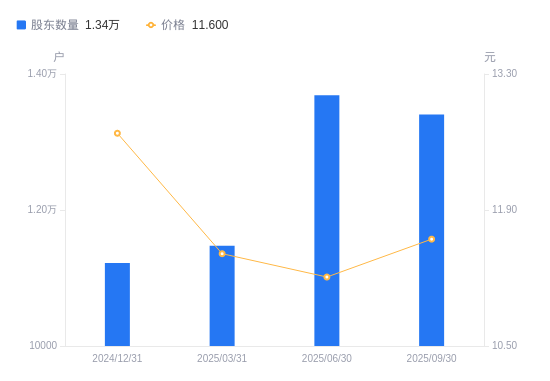 10月29日消息,数据显示,截至2025年9月30日,三维股份A股股东总户数为1.34万户,较上期(2025年6月30日)减少282户,降幅2.06%。公司最新A股总股本为10.31亿股,其中流通A股10.13亿股,户均持有流通A股数量为7.55万股,较上期增加1556.26股,增幅2.10%;户均持流通A股市值87.62万元,较上期增加4.69万元,增幅5.66%。