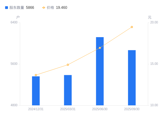 10月29日消息,数据显示,截至2025年9月30日,联翔股份A股股东总户数为5866户,较上期(2025年6月30日)减少251户,降幅4.10%。公司最新A股总股本为1.04亿股,其中流通A股1.04亿股,户均持有流通A股数量为1.77万股,较上期增加724.88股,增幅4.28%;户均持流通A股市值34.38万元,较上期增加5.68万元,增幅19.79%。