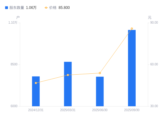 近一年(2024年9月30日至2025年9月30日),艾罗能源A股股东户数从7157户,增加至1.06万户,增幅47.69%,区间股价上涨40.69%。