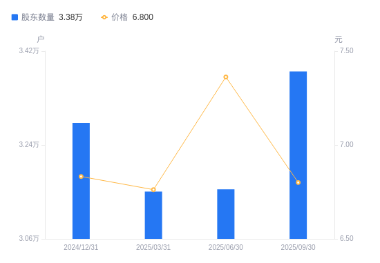 10月29日消息,数据显示,截至2025年9月30日,海利生物A股股东总户数为3.38万户,较上期(2025年6月30日)增加2258户,增幅7.16%。公司最新A股总股本为6.56亿股,其中流通A股6.49亿股,户均持有流通A股数量为1.92万股,较上期减少1373.84股,降幅6.68%;户均持流通A股市值13.05万元,较上期减少2.09万元,降幅13.80%。